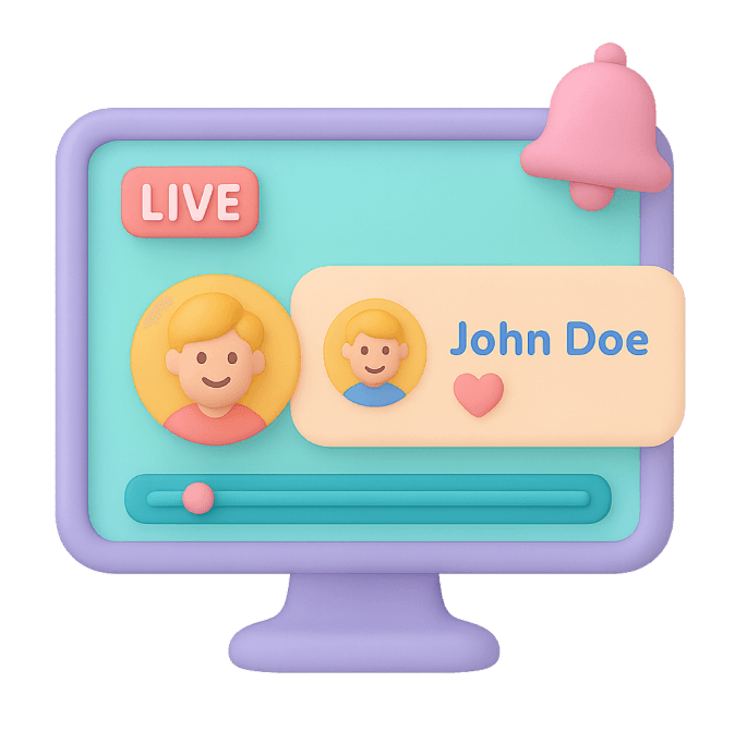 Tampilkan notifikasi, chat, dan dukungan penonton secara realtime di layar stream dengan desain yang catchy.