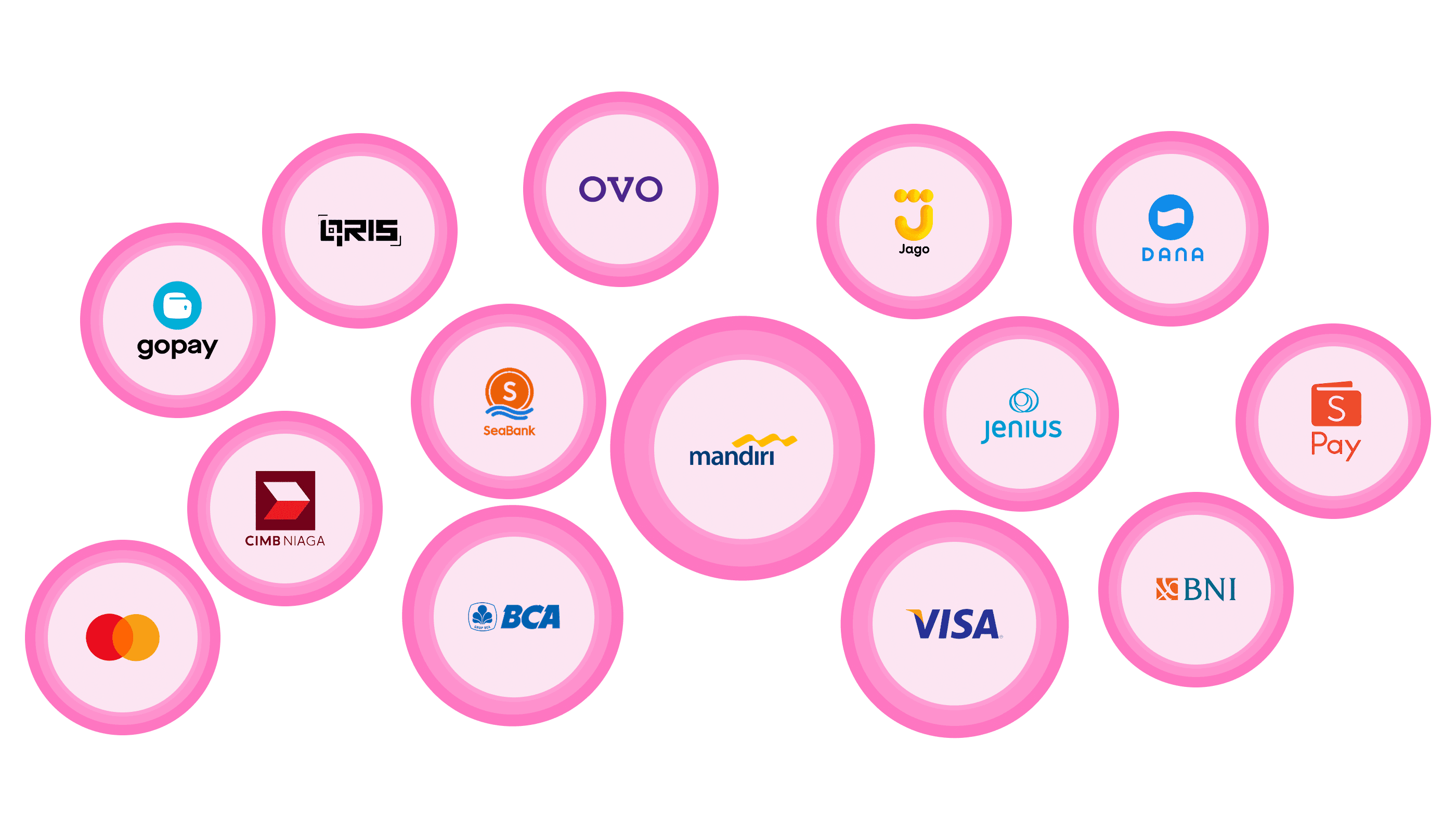 Mendukung berbagai jenis metode pembayaran: qris, e-wallet, virtual dan account, dll.